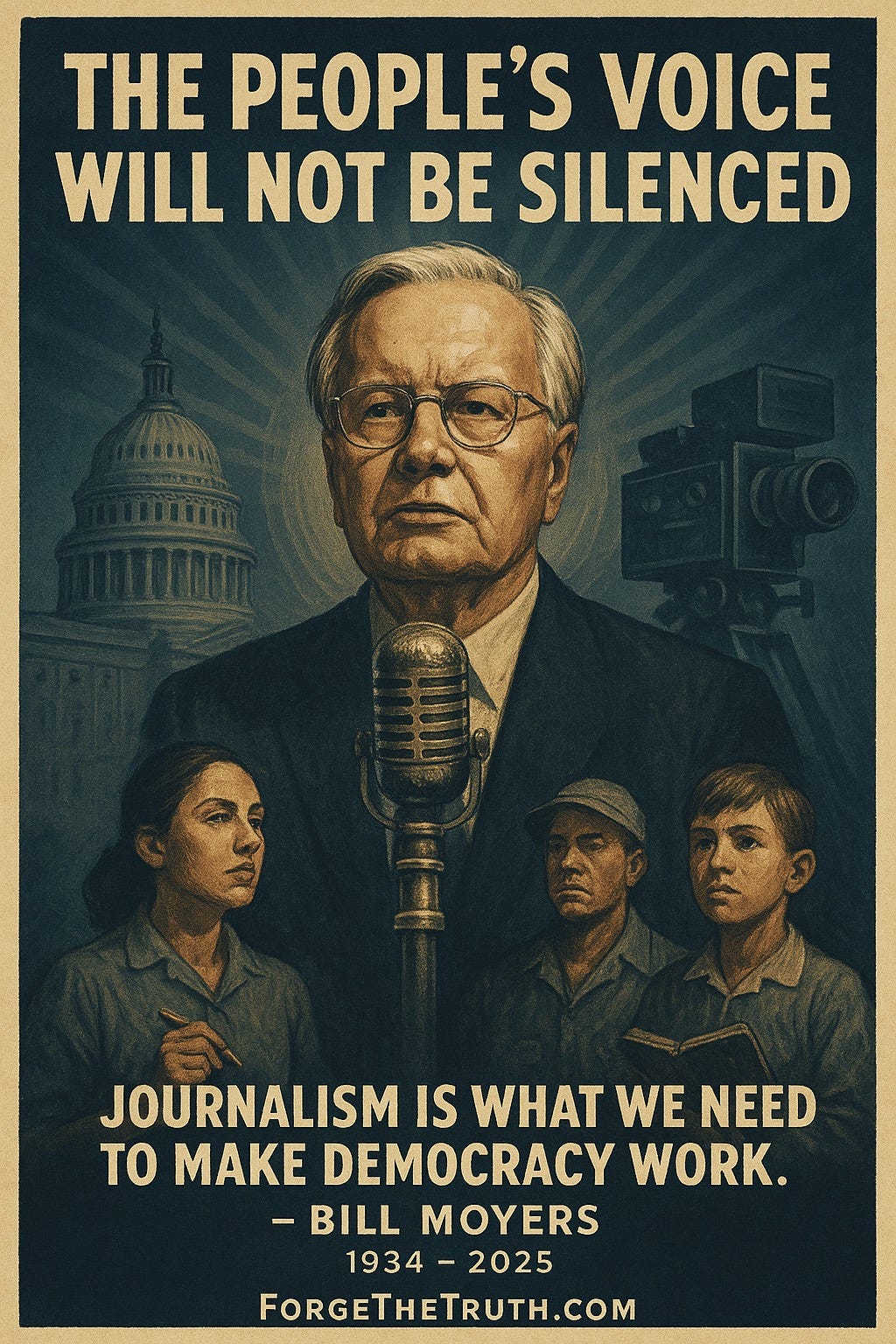 At a time when journalism is under siege, from censorship, from apathy, from billionaires who think facts are optional, we remember Bill Moyers as a lantern-bearer in the fog. He understood that truth-telling is not neutral. It is radical. It is necessary.